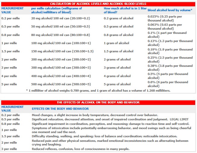 Blood Alcohol Concentration (Promil) and Its Predictable Effects on Driving