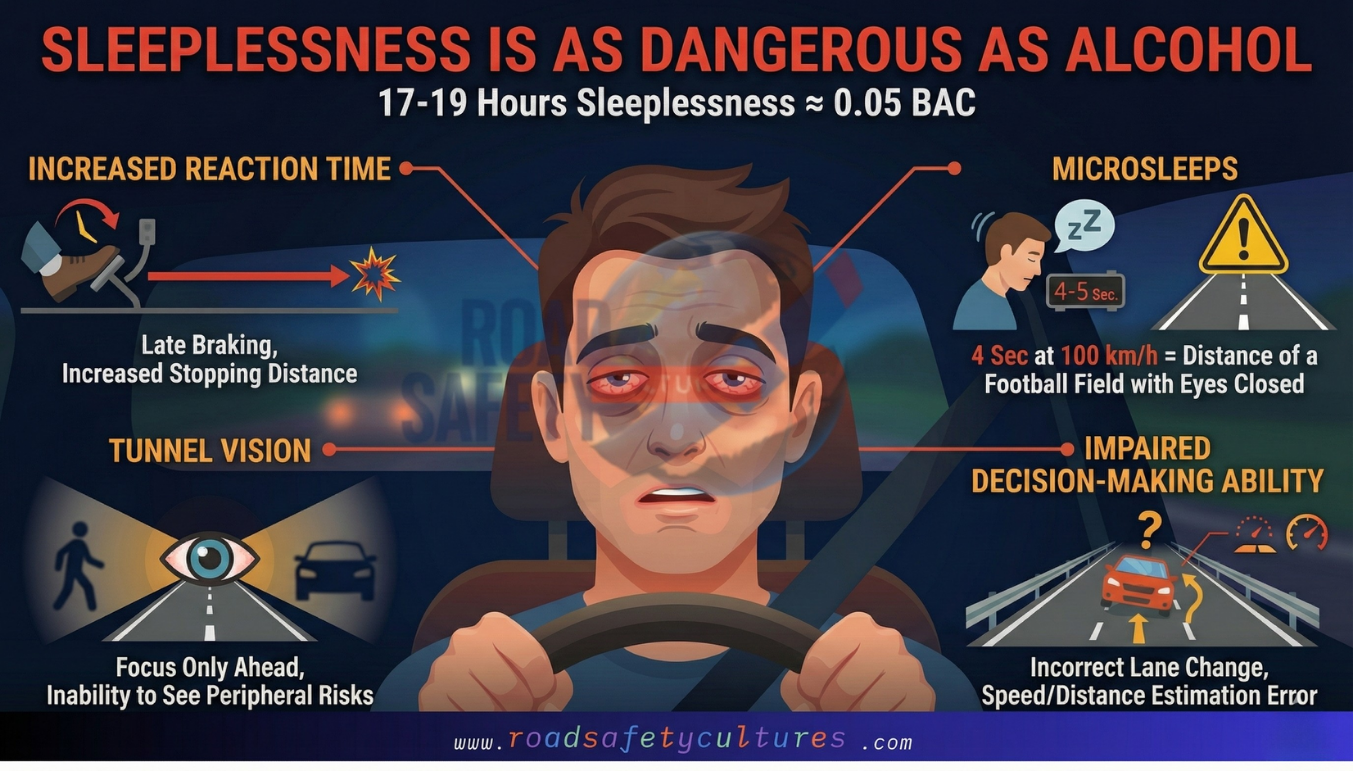 Microsleep: These are short, involuntary sleep episodes lasting 4-5 seconds that occur without the driver realizing it. In a vehicle traveling at 100 km/h, a 4-second microsleep is equivalent to driving the length of a football field "with your eyes closed."