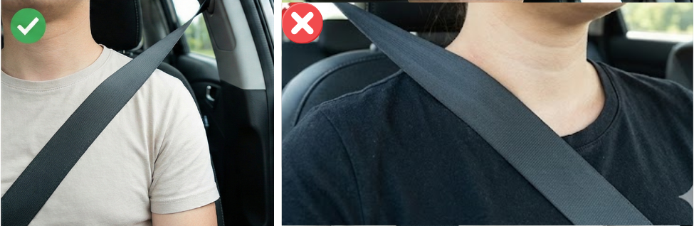 Mistake 1: If it is too close to the neck, it may apply pressure to the carotid artery or windpipe during a crash.