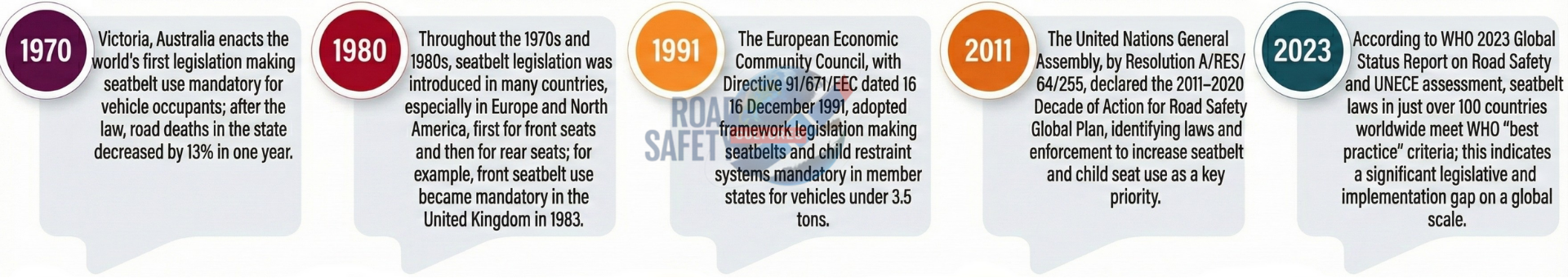 WHO 2023 – World Health Organization, road safety materials regarding the effectiveness of seats and seatbelts.