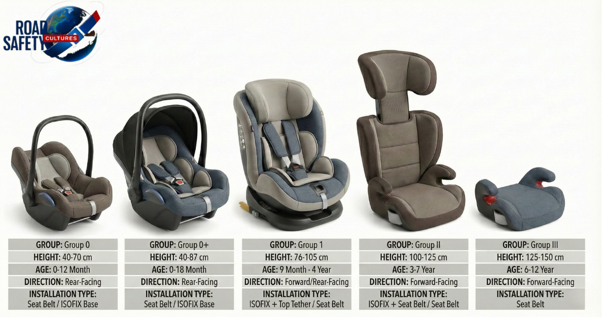 - Critical Rule (15 Months): Rear-facing use is mandatory until the child is at least 15 months old (and usually 76 cm tall).