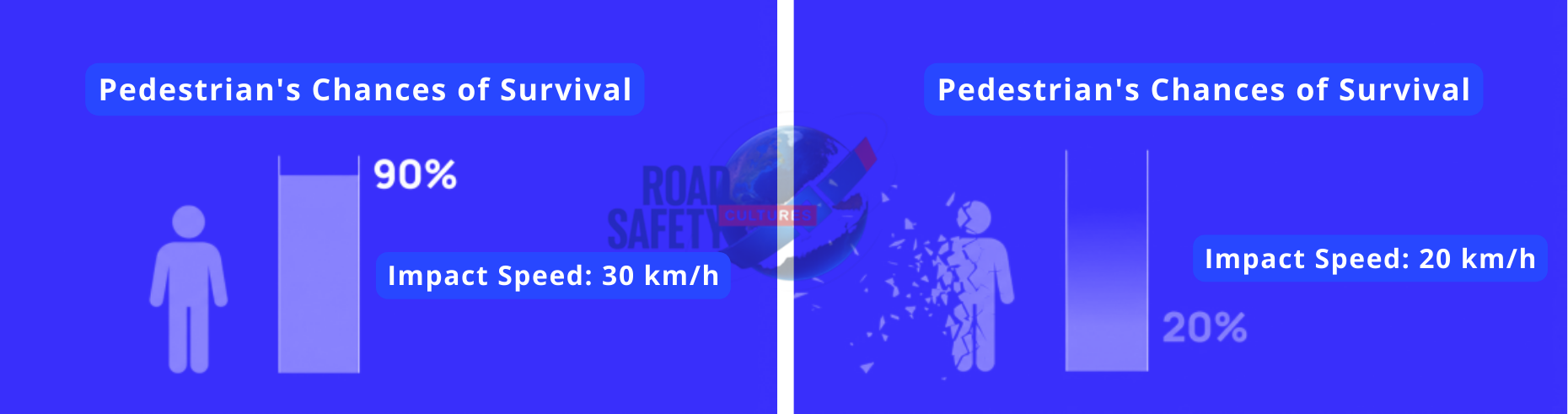 The Rationale: A pedestrian struck by a vehicle at 30 km/h has a 90% chance of survival. However, when the speed increases to 50 km/h, this chance drops to below 20%.