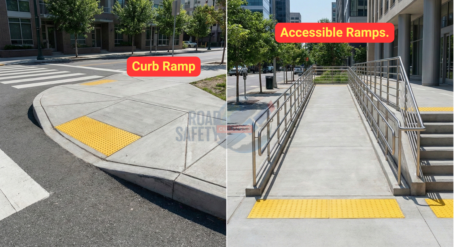 Purpose: To eliminate the massive height difference between the sidewalk and the road level, ensuring the safe transition of wheelchairs.