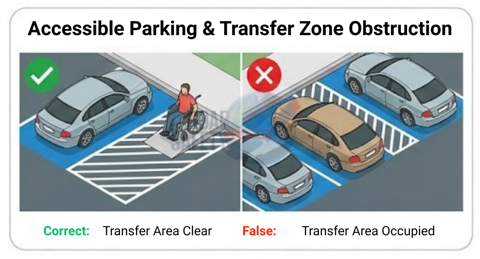 Purpose: To provide safe parking with the necessary width for wheelchair transfer, situated as close as possible to accessible routes.