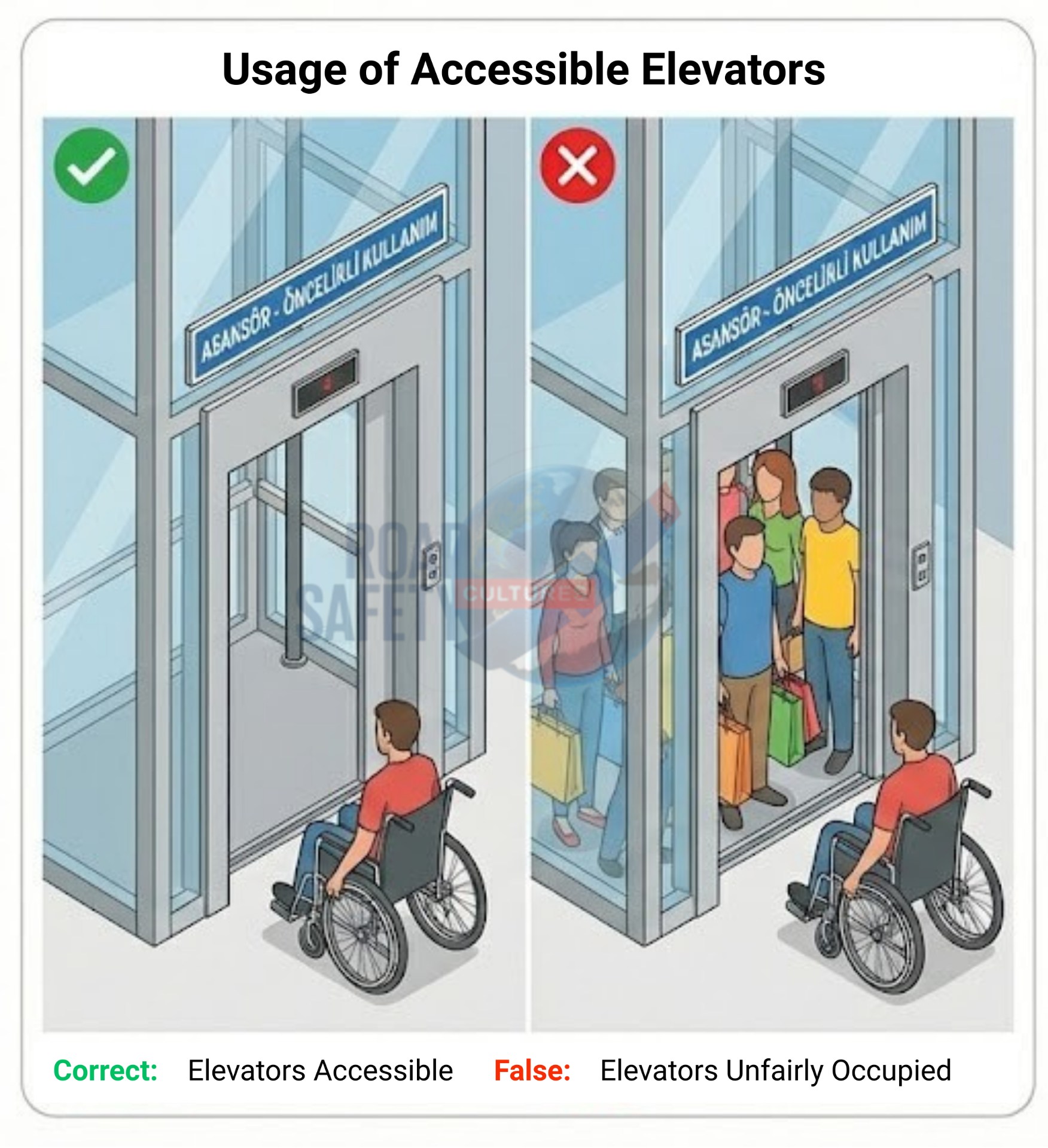 Accessible elevators located at metro entrances or overpasses are critical pieces of equipment that make vertical transportation possible. When individuals without physical disabilities occupy these elevators, it causes those who truly need them to wait for long periods and arrive late to their destinations. We must remember that elevators are invaluable access tools that should not be idly occupied, and priority must always be given to our neighbors with mobility limitations. Knowledge and sensitivity are the most essential fuels for a barrier-free transportation system.