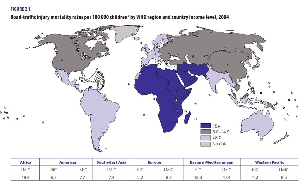 Dünya Sağlık Örgütü (WHO) ve UNICEF'in yaptığı global çalışmalarda, çocuk ölümleri ve yaralanmaları açısından yol ve trafik güvenliği önemli bir risk faktörü olarak öne çıkmaktadır.