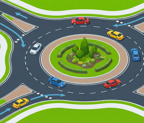 Özellikle dörtlü kavşaklarda dik açılı çarpışmaları önler. Geometrisi gereği hızları düşürmeye zorlar ve bir çarpışma yaşansa bile açıyı daralttığı için enerjinin ölümcül seviyelere çıkmasını engeller.