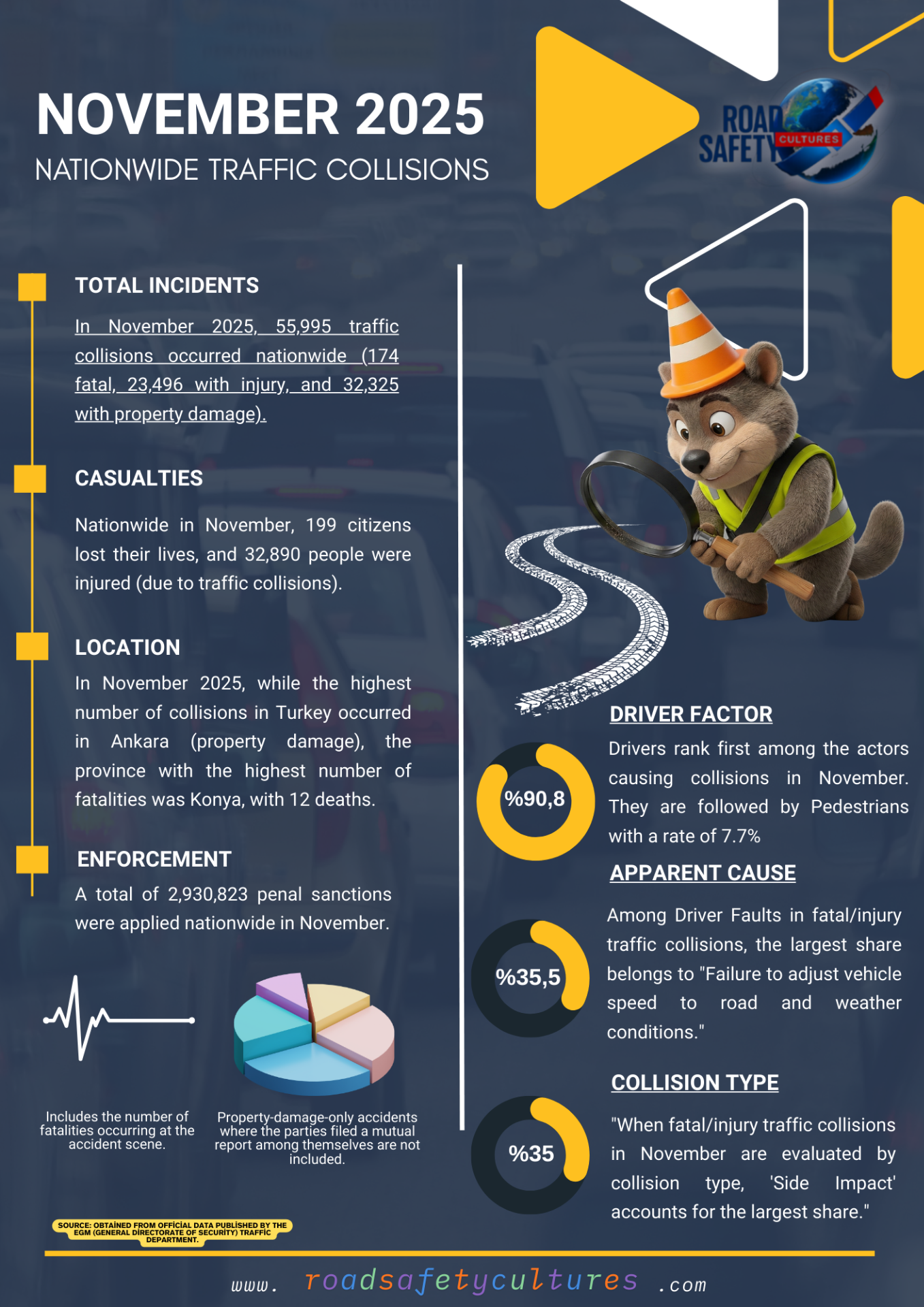 Traffic statistics, which take a snapshot of our safety on the roads every month, consist of not just cold numbers; every figure represents a human, a family, and a life. We have reviewed the November 2025 Traffic Statistics Bulletin published by the Traffic Department of the General Directorate of Security for you.