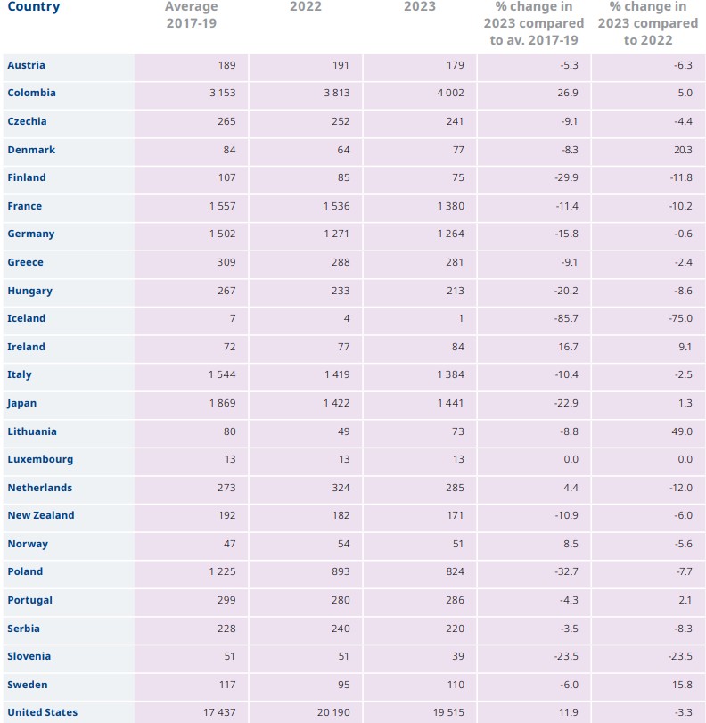 - Preliminary data for the first half of 2023 shows that the number of deaths in 24 countries decreased by an average of 2.8% compared to 2022. Yet, this decline is quite insufficient when compared to the United Nations' goal of halving deaths by 2030.